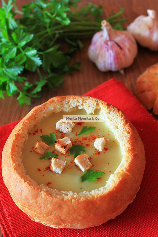 Per quanto riguarda la zuppa all’aglio… non fatevi spaventare, l’aglio conferisce a questa zuppa una fragranza ed un sapore davvero molto delicato, per nulla eccessivo o “ingombrante”. Un vero comfort food per le rigide giornate d’inverno, quelle che soprattutto in Slovacchia e in Repubblica Ceca vedono le temperature scendere anche di diversi gradi sotto lo zero. La zuppa nel pane sa quasi di rifugio di montagna, di baita, di camino acceso mentre fuori la neve scende copiosa. Sa di pranzo in famiglia e di convivialità. E per questo motivo è un piatto che, con tutte le sue varianti territoriali, si trova di frequente sulle tavole dei paesi più freddi.