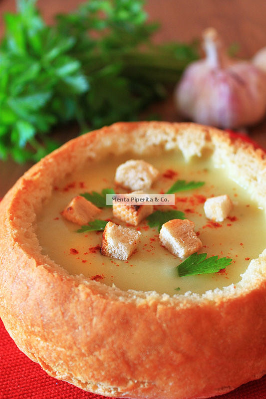 Chi di voi è stato in Slovacchia o in Repubblica Ceca avrà forse avuto modo di mangiare questa zuppa calda e fumante, saporitissima e densa, servita in una pagnottella di pane scavata e resa ancor più irresistibile da del buon formaggio fuso.