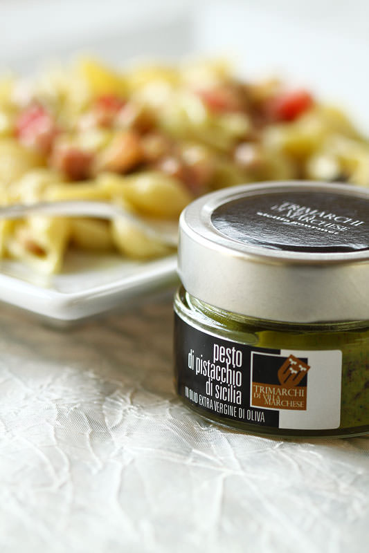 Conchiglie con pesto di Pistacchi di Sicilia e pancetta
