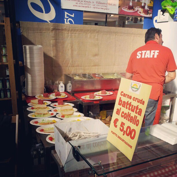 Ogni momento ha avuto il suo perchè: dall’incontro sempre piacevole con alcune amiche blogger, fino ad allora conosciute virtualmente solo per nome – o meglio per “nick name” – tra cui Marina del blog la Tarte Maison, Patrizia de I Dolci nella Mente, Cran di Cappuccino e Cornetto… alle chiacchiere con gli amici della Tenuta la Parrina, il grande agriturismo mio “vicino di casa” in quei di Magliano in Toscana, di cui segnalo l’ottimo Guttus, il formaggio dal carattere deciso che arriva spesso a rallegrare la tavola di casa mia… dalla fila più che meritata per una porzione di battuta di carne al coltello (che buona!!!) al momento di evasione davanti ad un laboratorio di cucina che diventa vero e proprio spettacolo, come quello dei fratelli fornai della Fornofamiglia, impegnati in un teatro gastronomico finalizzato a far conoscere quel bene prezioso chiamato biodiversità.