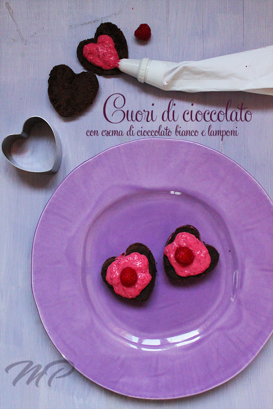 Cuori di cioccolato con crema ai lamponi e cioccolato bianco