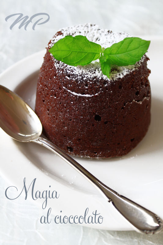 Oggi la giornata è partita male… e quando questo succede non ci sono storie. C’è un bisogno disperato di cioccolato! Non so voi, ma io vado letteralmente pazza per i soufflè al cioccolato dal cuore morbido. Se poi il cuore è morbido e bianco, beh allora per me è vera e propria magia. Ed è così che ho ribattezzato questo dolcetto di indubbia bontà e sicuro successo sulle vostre tavole: “magia” al cioccolato!