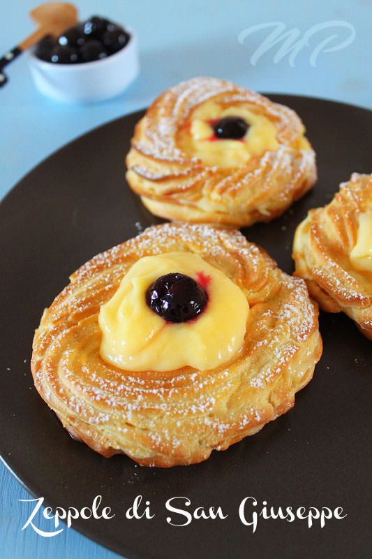 Le zeppole di San Giuseppe, per chi non le conoscesse, sono dei dolci realizzati con pasta choux (in altre parole l’impasto tipico dei bignè), fritti o cotti al forno, farciti con crema pasticcera e decorati con amarene. Vengono tradizionalmente preparati in occasione della Festa del Papà (San Giuseppe, appunto).