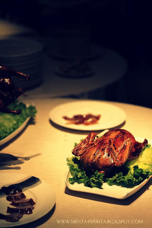 Arriva poi il momento tanto atteso dalla sottoscritta, il rito della sfilettatura dell’anatra alla pechinese, a cui assistiamo con sguardo attendo e cùpido. Degustata per la prima volta in un ristorante di Pechino anni fa, l’anatra alla pechinese entra subito a pieno titolo nella hit parade delle pietanze orientali da me predilette. E anche al Bon Wei l’involtino di anatra alla pechinese non si smentisce, tanto da indurmi a fare il bis (e ammetto senza indugio alcuno che sarei pure ricorsa al tris, se non avessi avuto altri numerosi assaggi lì ad attendermi).