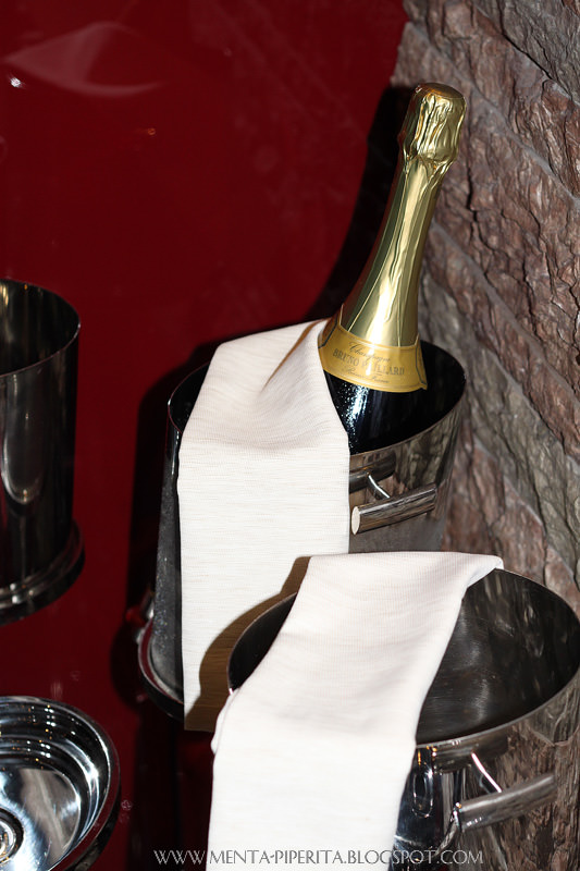 Esordisco dicendo che al Bon Wei il bicchiere è sempre mezzo pieno, nell’accezione più letterale del termine. Ogni piatto che ci viene servito è accompagnato da bollicine di champagne, tanto fresco e brioso da scendere giù per l’ugola che è un vero piacere.