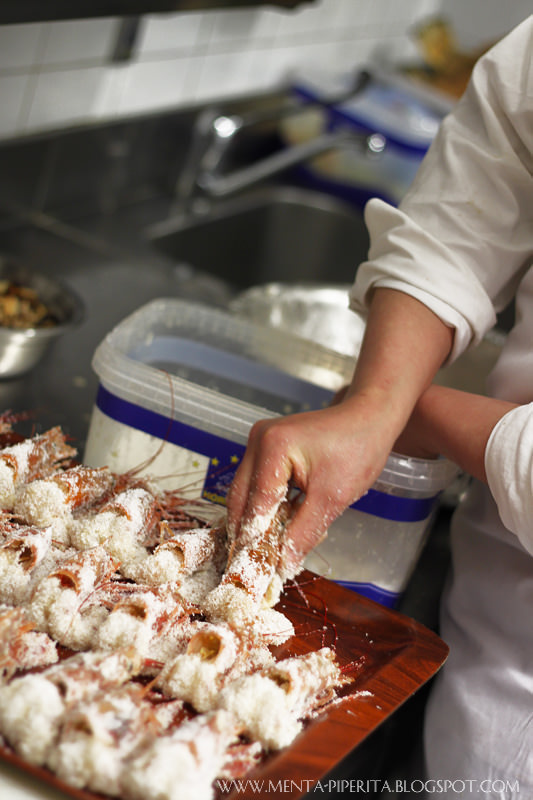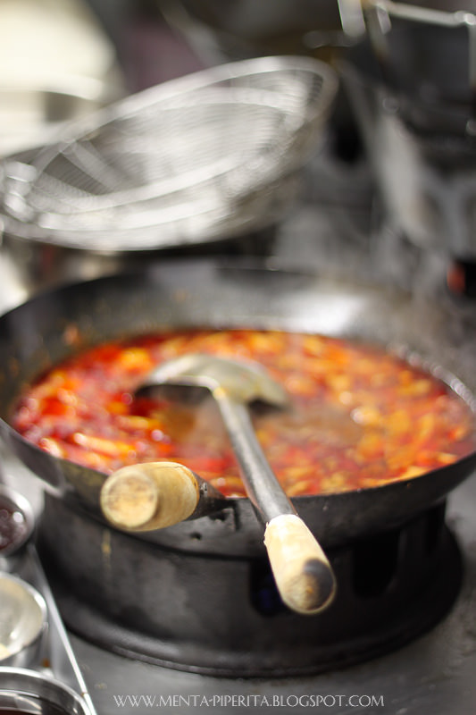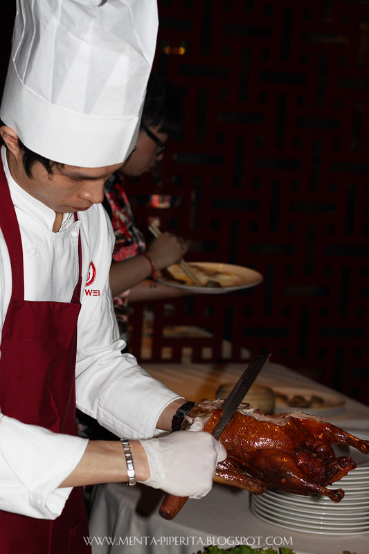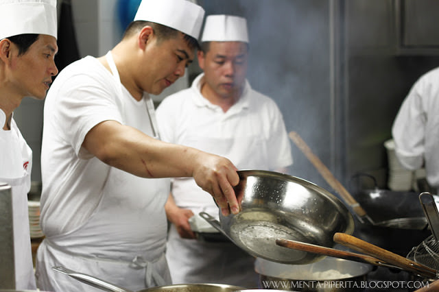 Subito dopo l’aperitivo e prima di cena, non perdo l’occasione di intrufolarmi in cucina come una gattina curiosa, scortata da un disponibilissimo Ike Wang che mi mostra gli chef all’opera – primi tra tutti Guoqing Zang, chef di Hong Kong a cui si deve il merito di aver studiato e collaudato insieme ai proprietari il ricco menù del Bon Wei. Lascio che siano le immagini a parlare, più che le parole, poichè è chiaro che rendano assai meglio l’idea.