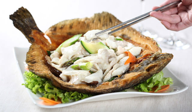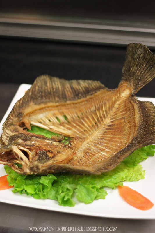 I gamberoni Bon Wei che giungono in tavola poco dopo non mi fanno rimpiangere il tris mancato di anatra alla pechinese. A parte l’elegantissima presentazione, rapiscono il gusto con la loro delicata panatura al cocco dal sapore esotico. Fantastici, così come il rombo saltato con verdure che segue poco dopo. La peculiarità della pietanza? Il fatto di essere servito su uno “scheletro” di rombo essicato utilizzato a mo’ di piatto, che una volta svuotato può anche essere sgranocchiato, come fosse una patatina. Adoro la trovata, per non parlare della polpa di rombo, succosa, gustosa e delicatissima.