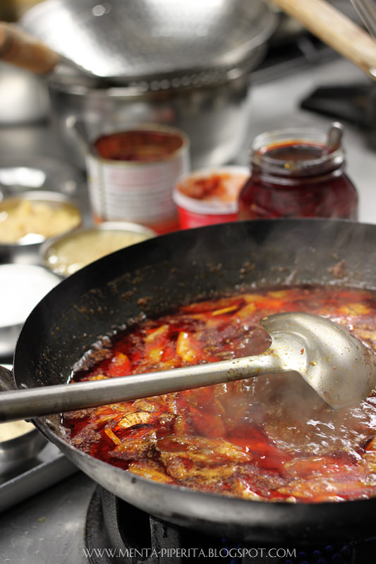 Arriva poi il momento di farsi coraggio ed assaggiare il piatto che lascerà tutti “a bocca aperta” per la sua piccantezza: il Shui Zhu di manzo, uno stufato “arrabbiatissimo” servito con del riso bianco e fagiolini verdi serviti anch’essi in salsa piccante. Piatto destinato a risultare assai gradito agli amanti dei gusti decisi (mentre la sottoscritta, devo ammetterlo, per via della sua scarsa predisposizione al piccante al secondo boccone ha già la linguetta che tocca terra).