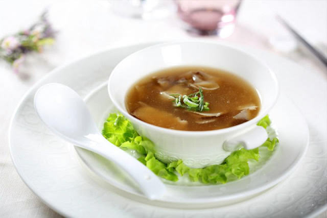 A seguire, arriva in tavola lei, la zuppa di abalone. Molti di voi si chiederanno cosa diavolo sia questo abalone, ebbene, trattasi di un mollusco di notevoli dimensioni che viene affettato e che una volta cotto ha la consistenza è l’aspetto di una fetta di fungo porcino (almeno, a me ha dato questa impressione).