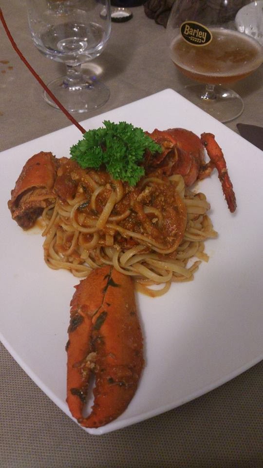 La birra scende che è un piacere, cozze, vongole, polpi e canolicchi ballano la rumba nello stomaco dove, tuttavia, c’è ancora spazio per il primo piatto. Arrivano le mie linguine all’astice. Un piatto dalle dimensioni considerevoli e dal profumo ammaliante. L’astice è praticamente intero “se mi tira una cinquina con quella chela mi fa secca in un istante”. Ma per fortuna, quello passato a miglior vita è lui ed io ne approfitto per continuare a mangiare senza preoccupazioni.