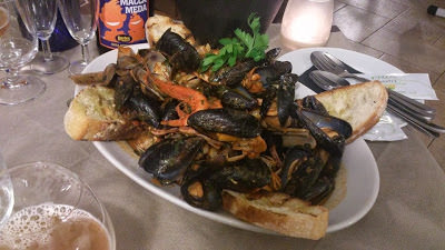 Arriva poi il momento di ordinare. “Zuppetta alla cagliaritana“, minimo per due persone. Thò, eccolo. E’ questo l’antipasto che vogliamo. Ci intriga, è fatto apposta per noi. “Ma sì, Andre, è una zuppetta ai molluschi e frutti di mare, prendiamo questa vah, che domattina alle 4 dobbiamo alzarci per prendere l’aereo alle 7 e almeno stiamo leggerini. Poi io però dato che avrò ancora un languorino ordino anche le linguine all’astice. Ecco sì, direi che può andare. Tanto la zuppetta è solo una zuppetta, al massimo riordiniamo il pane se proprio abbiamo ancora fame”.