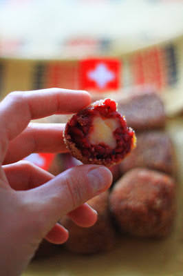Il formaggio prescelto è stato poi il gruyere. Per la sua consistenza, il suo profumo, il suo colore. Il più adatto a trasformarsi nel cuore del mio quadrotto e nella croce rappresentata al centro della bandiera del Paese che rappresenta.