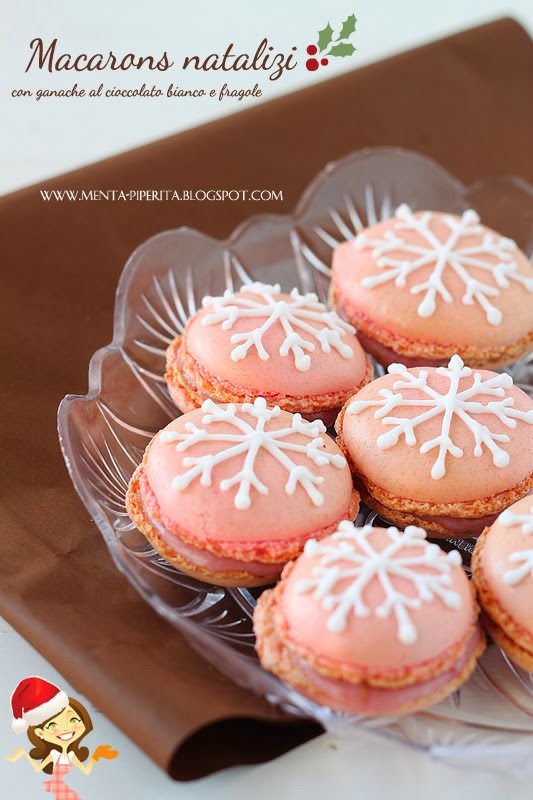 Quindi lasciamo Hansel e Gretel ai loro preparativi, alla loro ansia da prestazione e ai loro dilemmi esistenziali e concentriamoci oggi su una nuova dolce creazione, questi adorabili macarons natalizi, farciti con una delicata ganache al cioccolato bianco e fragole e decorati con ghiaccia color della neve.