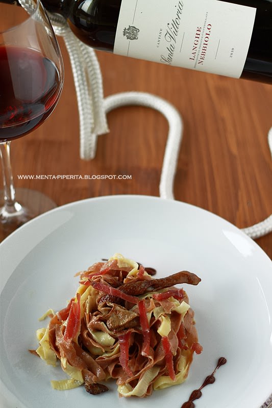 Un vino dall’aroma intenso e dal gusto ricco che al palato si coniuga perfettamente con il mix di sapori e di profumi di queste tagliatelle speciali.