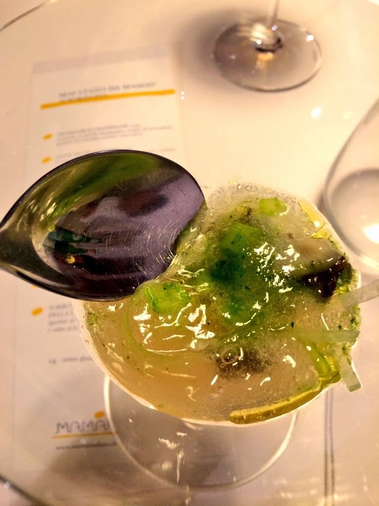 In sintesi, il mio giudizio sul Mamai di via Adige 9 a Milano è entusiasticamente positivo. Apprezzabilissima la ricerca continua di abbinamenti originali, il lavoro creativo che sta dietro la creazione di ogni piatto, l’eleganza dell’impiattamento e la cura del dettaglio. Al Mamai l’amore verso il cibo si traduce in attenzione e amore verso il cliente. Lodevole anche la scelta dei vini presentati in accompagnamento ad ogni singolo piatto. Per citarne un paio: Franciacorta Bosio Roseè (servito con le ostriche in gel di champagne) e Falanghina del Taburno della Masseria Frattasi (in accompagnamento alla ceviche di gamberi).