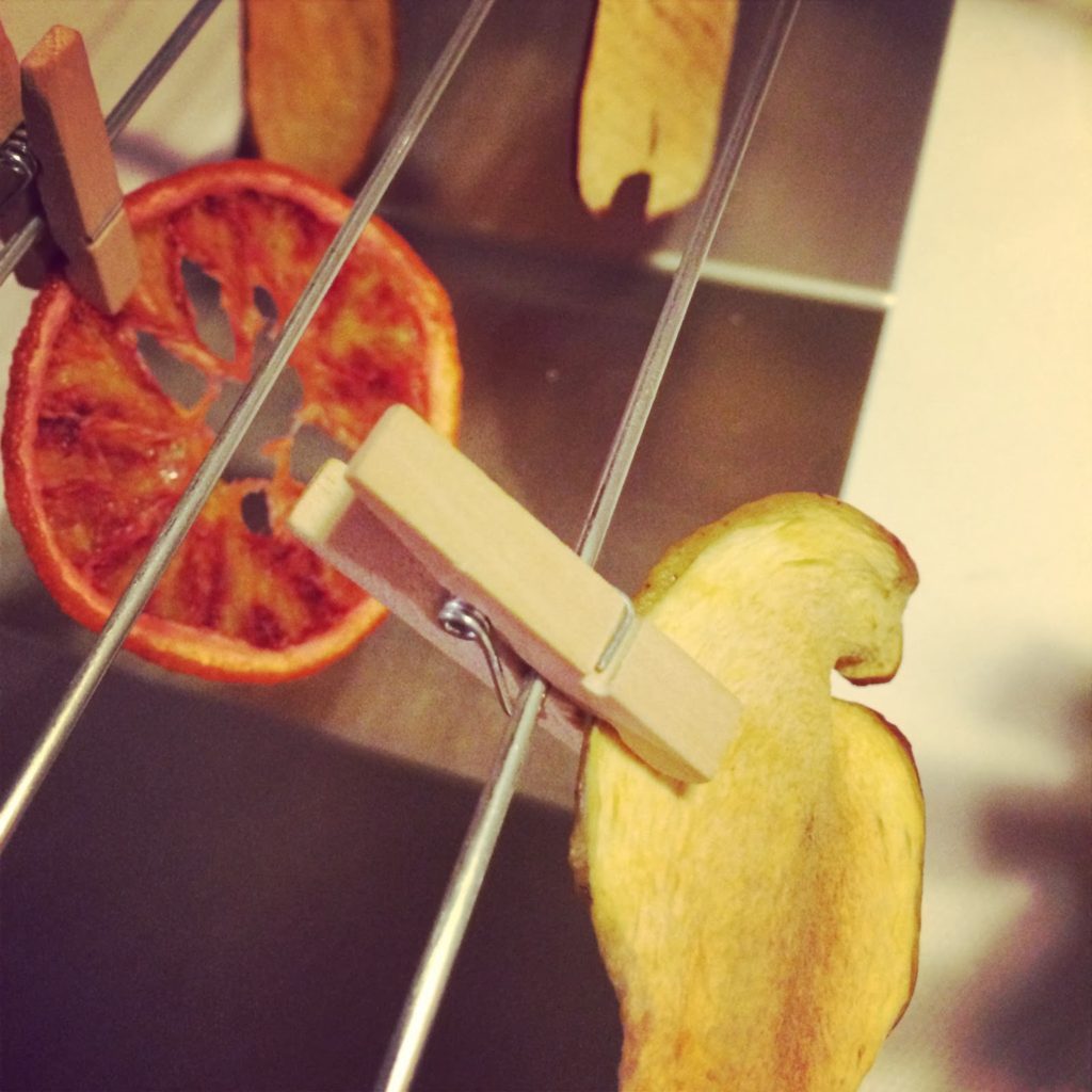 Il Mamai non smette di stupirci neanche a cena conclusa. Insieme ad caffè, accompagnato da praline di cioccolato croccanti, giungono a noi piccole strutture metalliche con appese fettine di frutta essicata, belle da vedere e profumatissime.